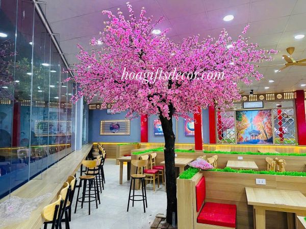Hoa đào trang trí quán mì cay Hàn Quốc