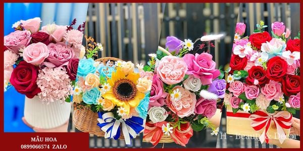 Chậu Hoa Sáp Cao Cấp để cô ấy để bàn làm việc luôn nhớ đến mình mỗi ngày. Lẵng hoa tặng bạn gái nhiều tone màu
